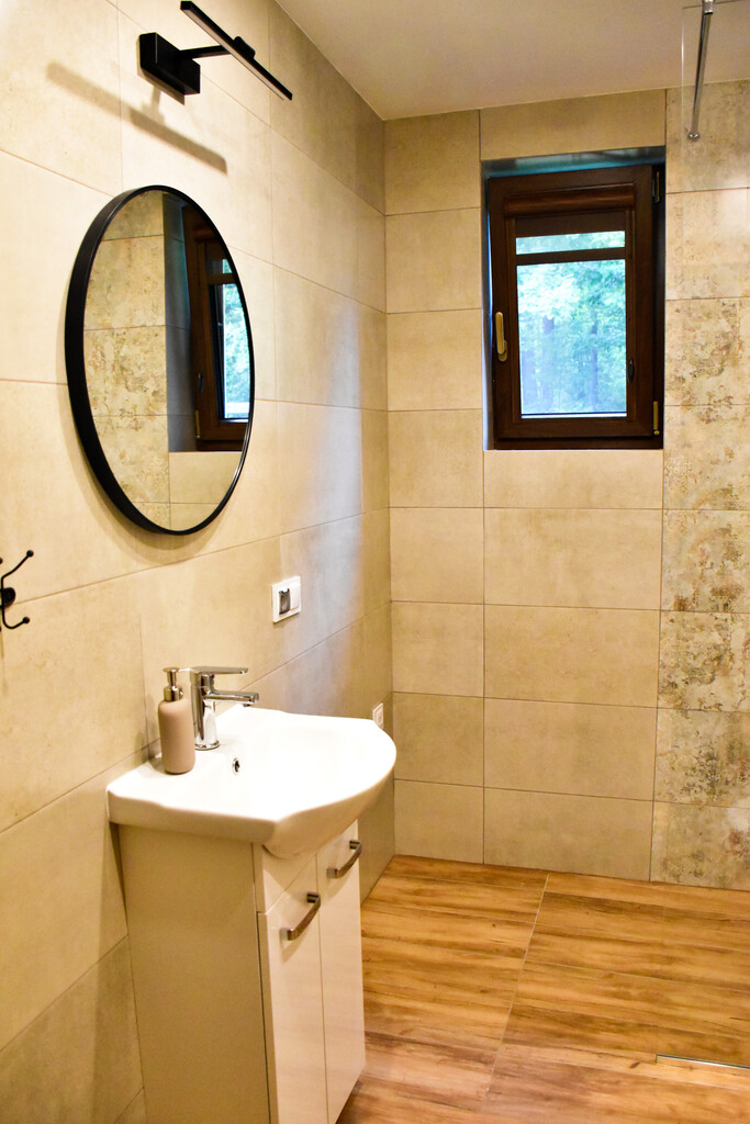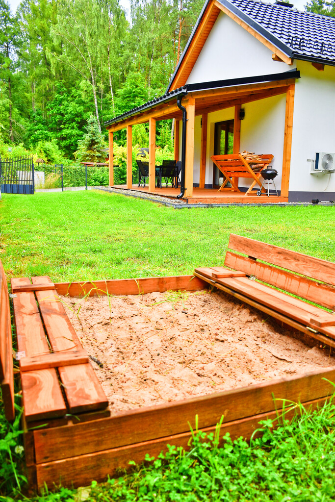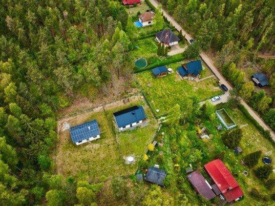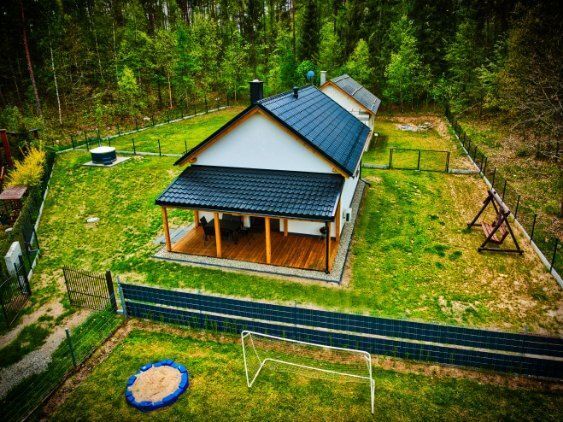 Dwa domki znajdują się w otoczeniu trzech ścian lasu, co gwarantuje prywatność i brak możliwości dodatkowej zabudowy w sąsiedztwie.