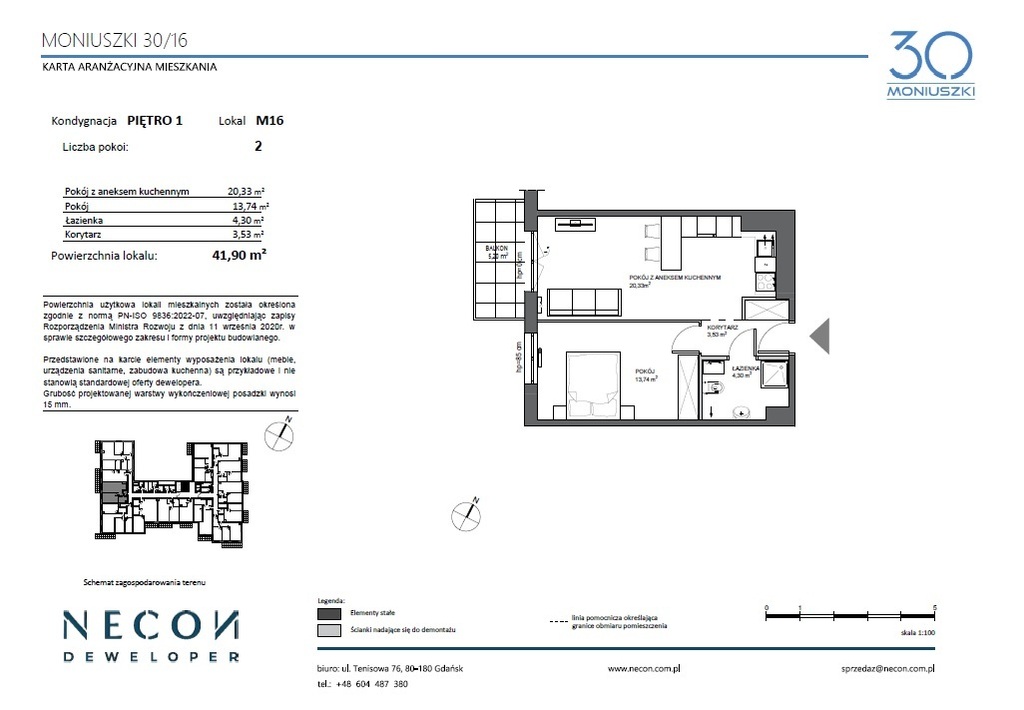 Przedmiotem oferty jest przestronne mieszkanie o powierzchni 41,90 m², położone na 1 piętrze nowoczesnego budynku. Lokal będzie gotowy do odbioru w 2025 roku.