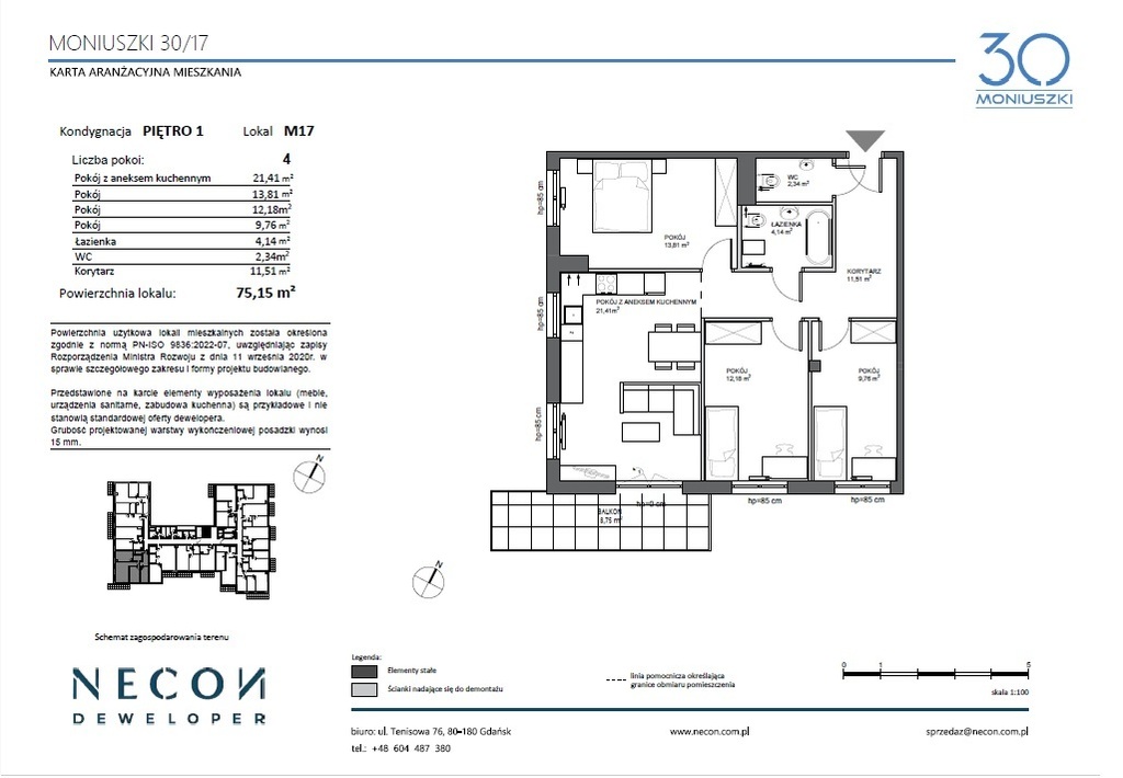 Przedmiotem oferty jest przestronne mieszkanie o powierzchni 75,15 m², położone na 1 piętrze nowoczesnego budynku. Lokal będzie gotowy do odbioru w 2025 roku.