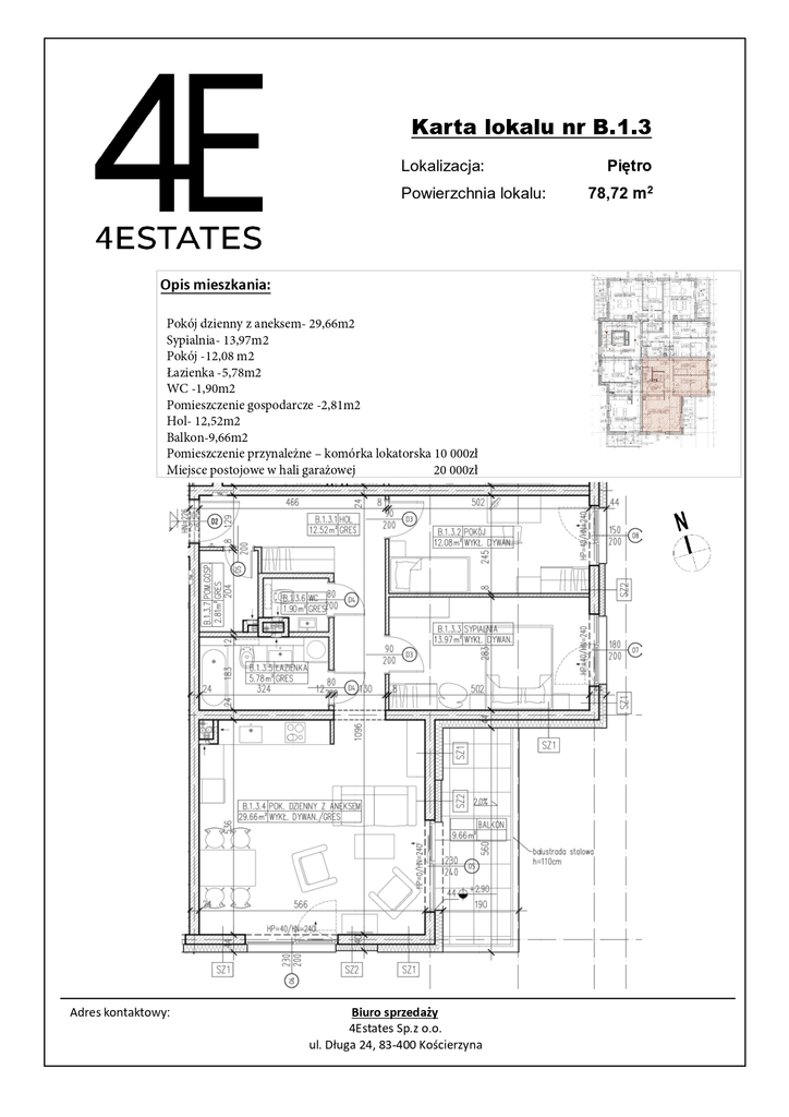 Inwestycja obejmuje 12 nowoczesnych lokali o powierzchniach od 34,20 m² do 78,72 m², dostępnych z ogródkami lub z balkonami. To doskonały wybór dla singli, par, rodzin oraz inwestorów.